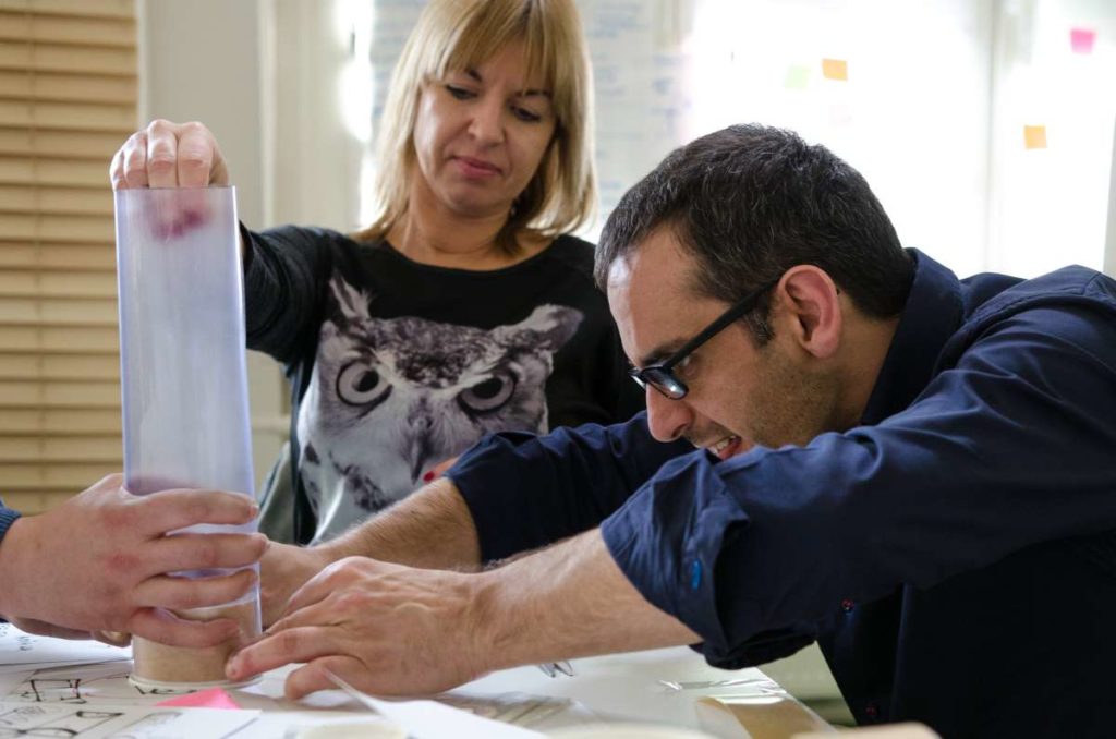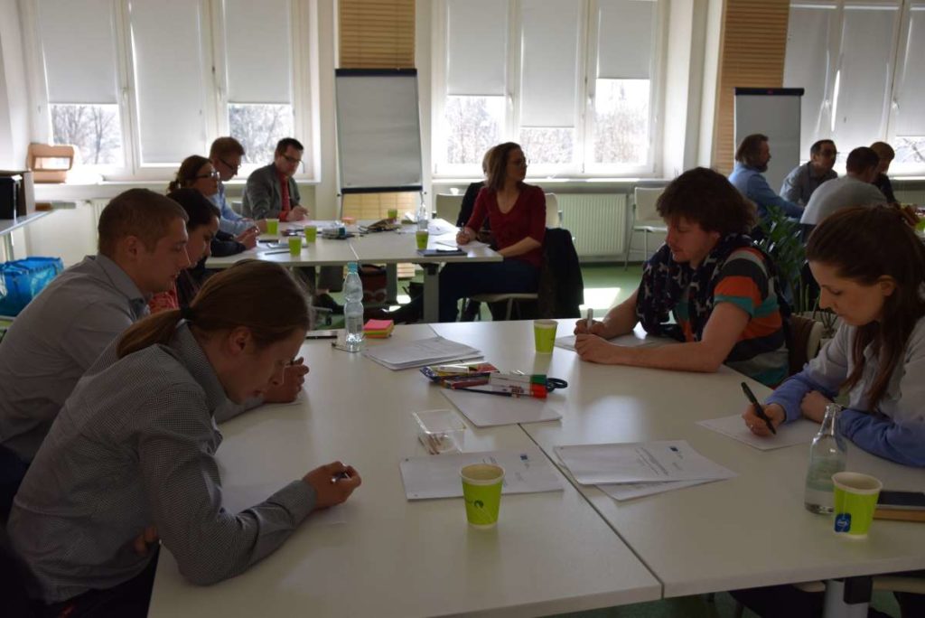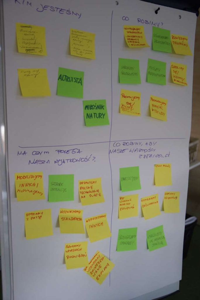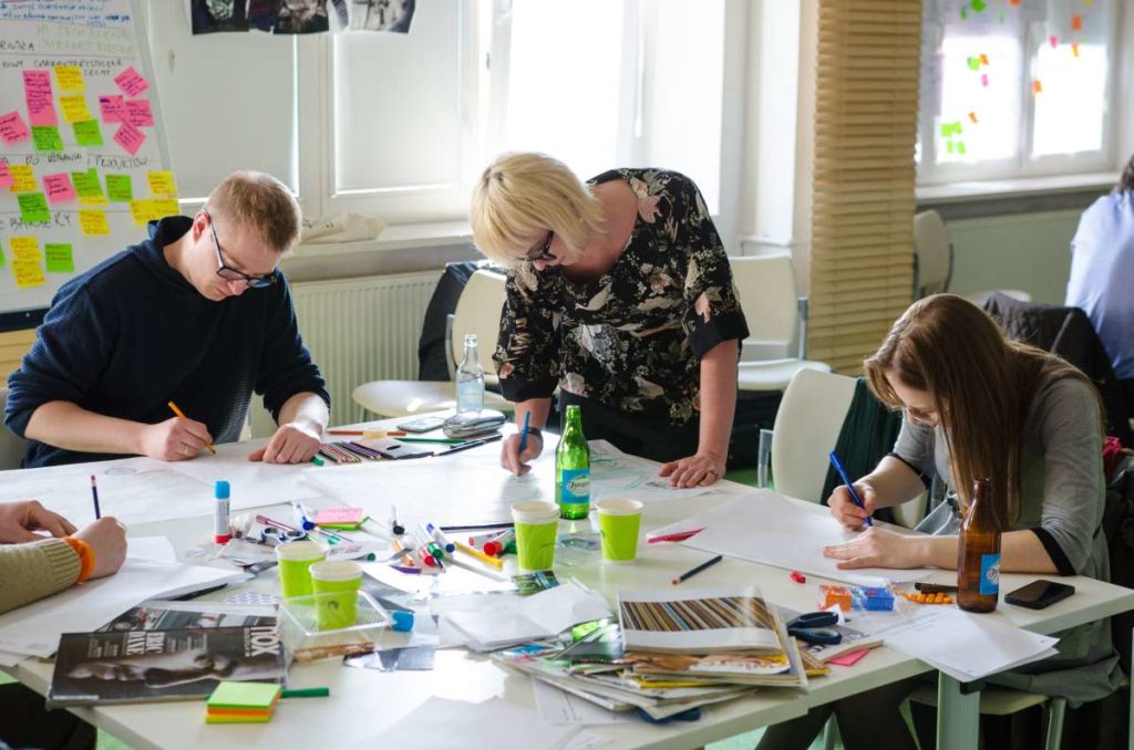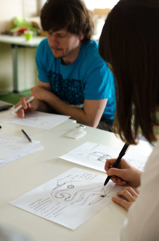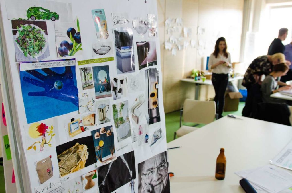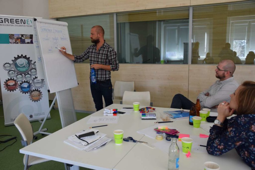 Praca podczas warsztatów została oparta o metodologię „Design Thinking” która wykorzystuje stosowane przez projektantów narzędzia w celu rozwiązywania problemów biznesowych i tworzenia innowacji/ wdrażania nowych, kreatywnych pomysłów w interdyscyplinarnych zespołach. W szukaniu tych rozwiązań kluczową zasadą jest koncentracja na potrzebach użytkowników oraz sposobach na dobre ich rozpoznanie. Dopiero na bazie zebranych informacji, analiz i badań rozpoczyna się etap szukania rozwiązań (poprzez proces tworzenia rozwijania i testowania pomysłów). W czasie warsztatów, na bazie założeń strategii projektu GreenEvo, identyfikacji kluczowych potrzeb interesariuszy projektu, analizy trendów, Concordia Design wraz z co-trenerem Zuzanną Skalską przeprowadzili cztery zespoły przez wielowymiarowe etapy eksploracji, kreacji i analizy.