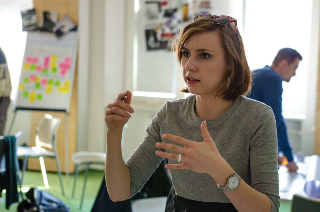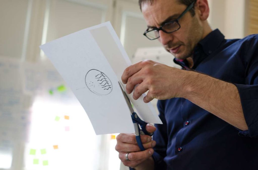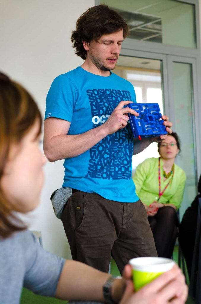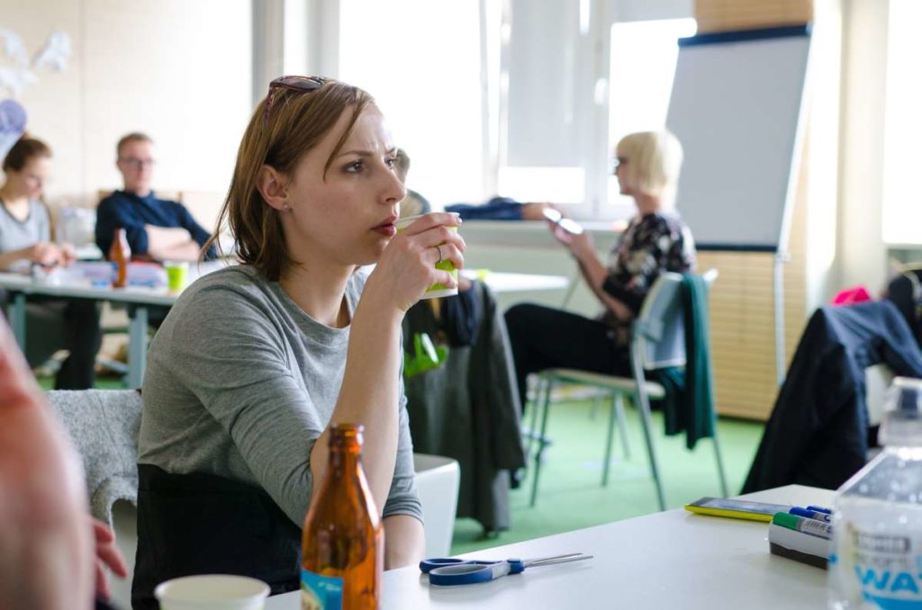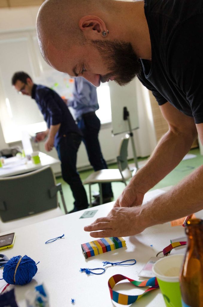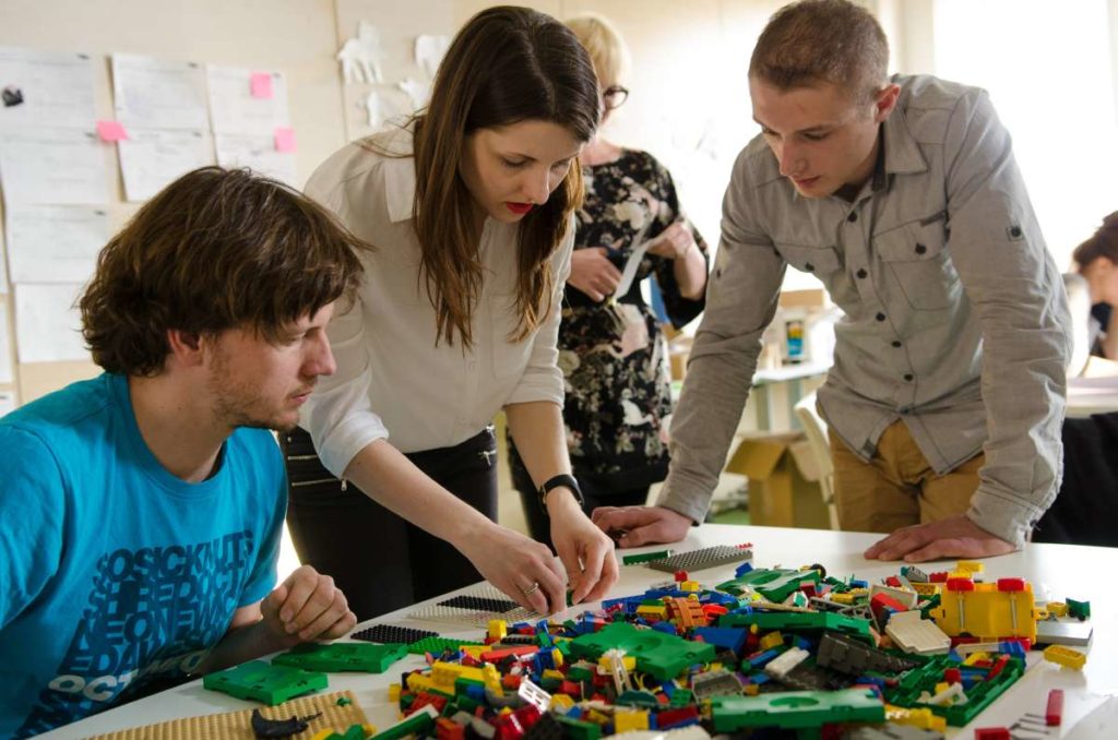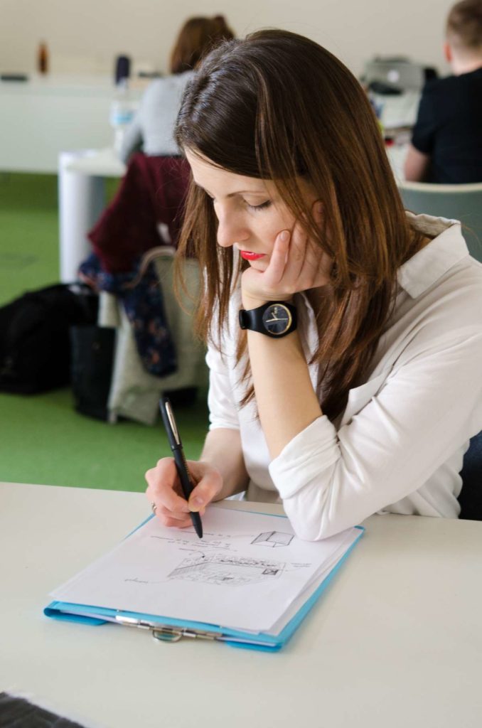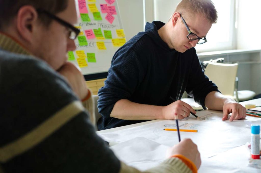 Praca podczas warsztatów została oparta o metodologię „Design Thinking” która wykorzystuje stosowane przez projektantów narzędzia w celu rozwiązywania problemów biznesowych i tworzenia innowacji/ wdrażania nowych, kreatywnych pomysłów w interdyscyplinarnych zespołach. W szukaniu tych rozwiązań kluczową zasadą jest koncentracja na potrzebach użytkowników oraz sposobach na dobre ich rozpoznanie. Dopiero na bazie zebranych informacji, analiz i badań rozpoczyna się etap szukania rozwiązań (poprzez proces tworzenia rozwijania i testowania pomysłów). W czasie warsztatów, na bazie założeń strategii projektu GreenEvo, identyfikacji kluczowych potrzeb interesariuszy projektu, analizy trendów, Concordia Design wraz z co-trenerem Zuzanną Skalską przeprowadzili cztery zespoły przez wielowymiarowe etapy eksploracji, kreacji i analizy.